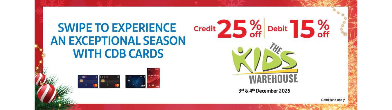 Enjoy 25% OFF with CDB Credit Card & 15% OFF with CDB Debit Card at The Kids Warehouse