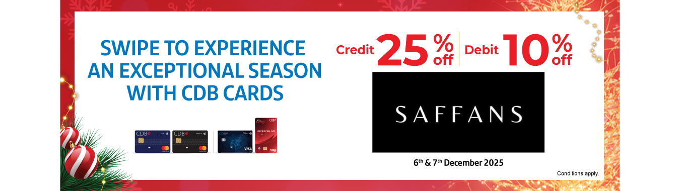 Enjoy 25% OFF with CDB Credit Card & 10% OFF with CDB Debit Card at Saffans
