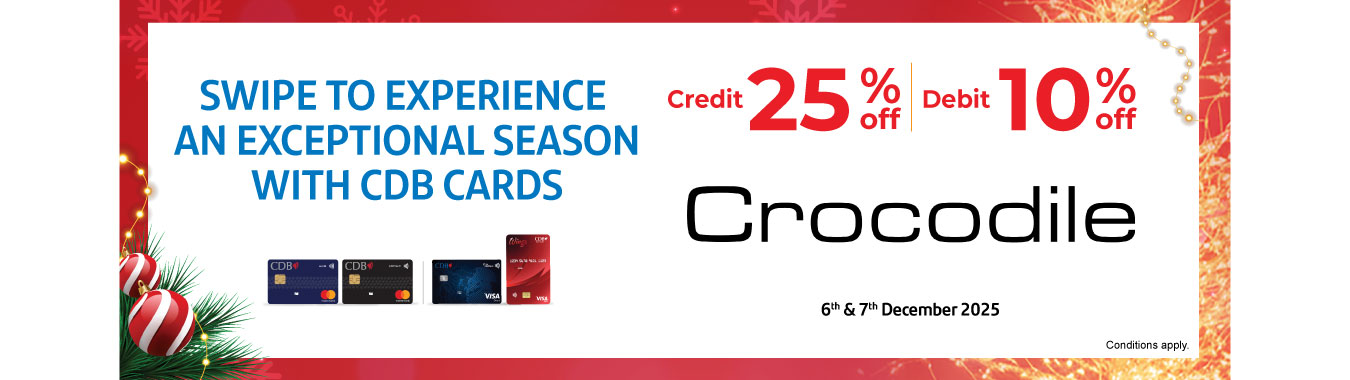 Enjoy 25% OFF with CDB Credit Card & 10% OFF with CDB Debit Card at Crocodile