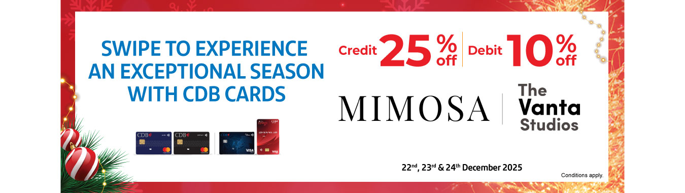 Enjoy 25% OFF with CDB Credit Card & 10% OFF with CDB Debit Card at Mimosa & Vanta Studios