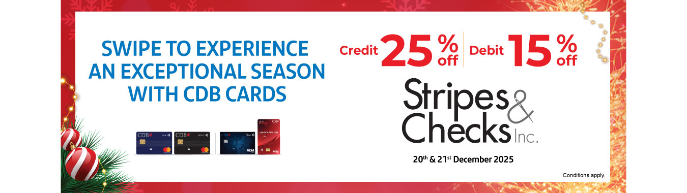 Enjoy 25% OFF with CDB Credit Card & 15% OFF with CDB Debit Card at Stripes & Checks