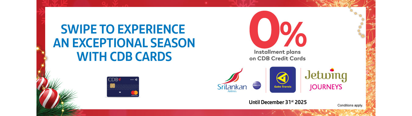 Enjoy 0% instalment plans on with your CDB World Credit Card at Sri Lankan airlines, Gabo Travels, Jetwing Journeys